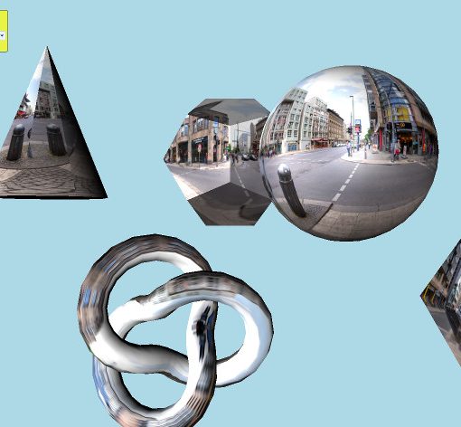 Some of these features necessitated changes to existing nodes, especially x-background and x-camera. These are documented in the supplied links. The tag x-triangles was added to support indexed triangle sets. This allows the content creator to define shapes in XSeen with the full material properties of the existing solid shapes.